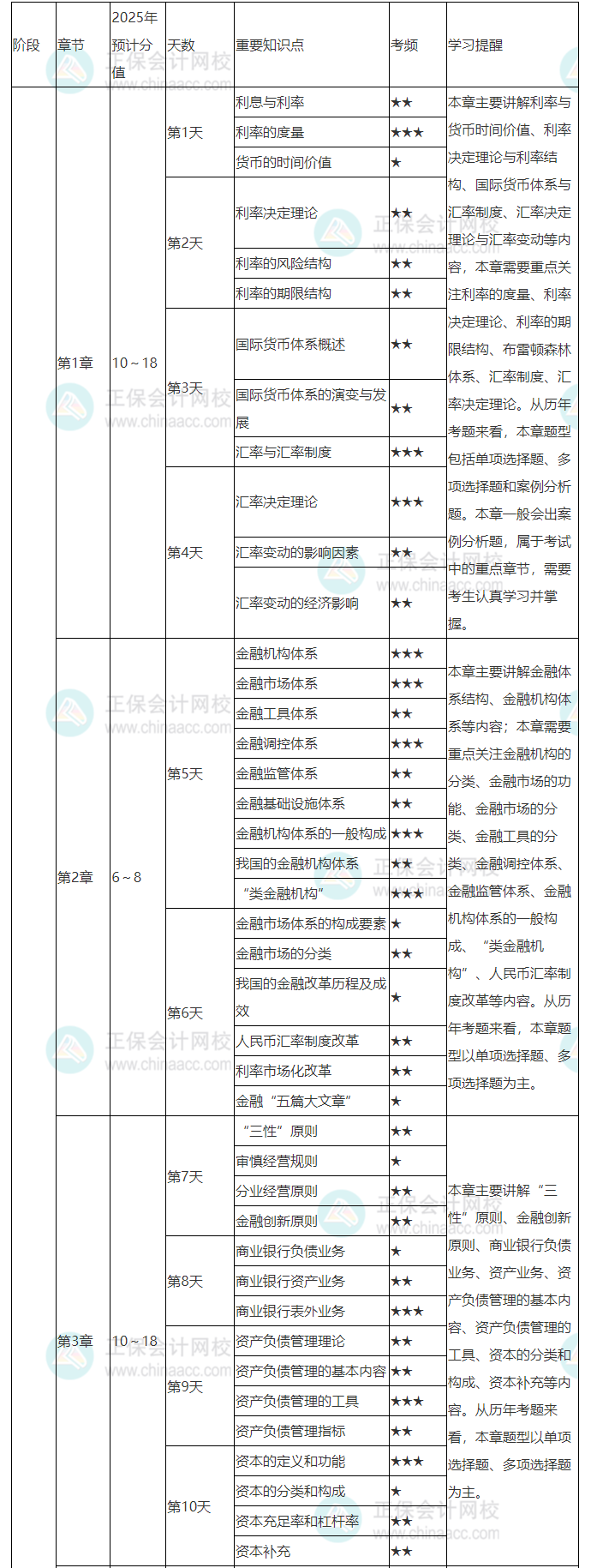 點擊下載完整版pdf:2025中級經濟師《金融》考前60天學習計劃