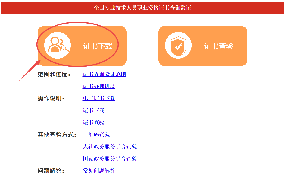 ①進入中國人事考試網→點左側的“證書查驗”,選擇證書下載,也可直接進入下載打印網址