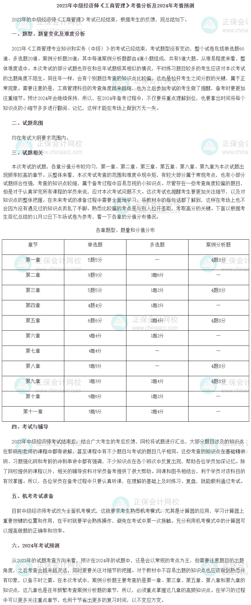 2023中級經濟師《工商管理》考情分析及2024考情預測
