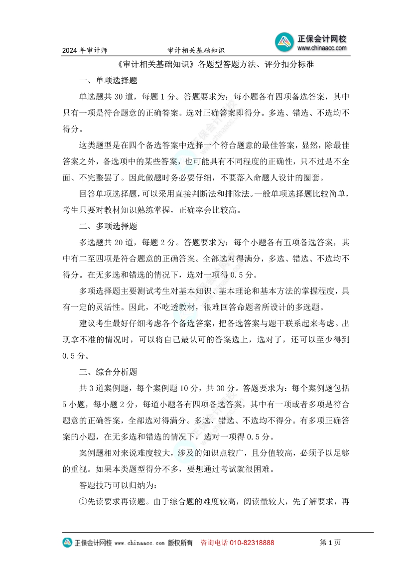 《審計相關基礎知識》各題型答題方法、評分扣分標準