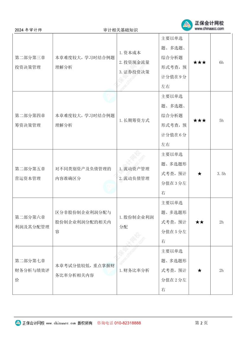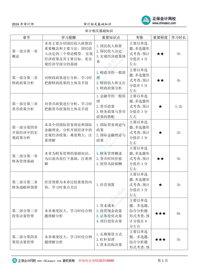 2024年中級《審計相關基礎知識》各章節學習時長及備考建議