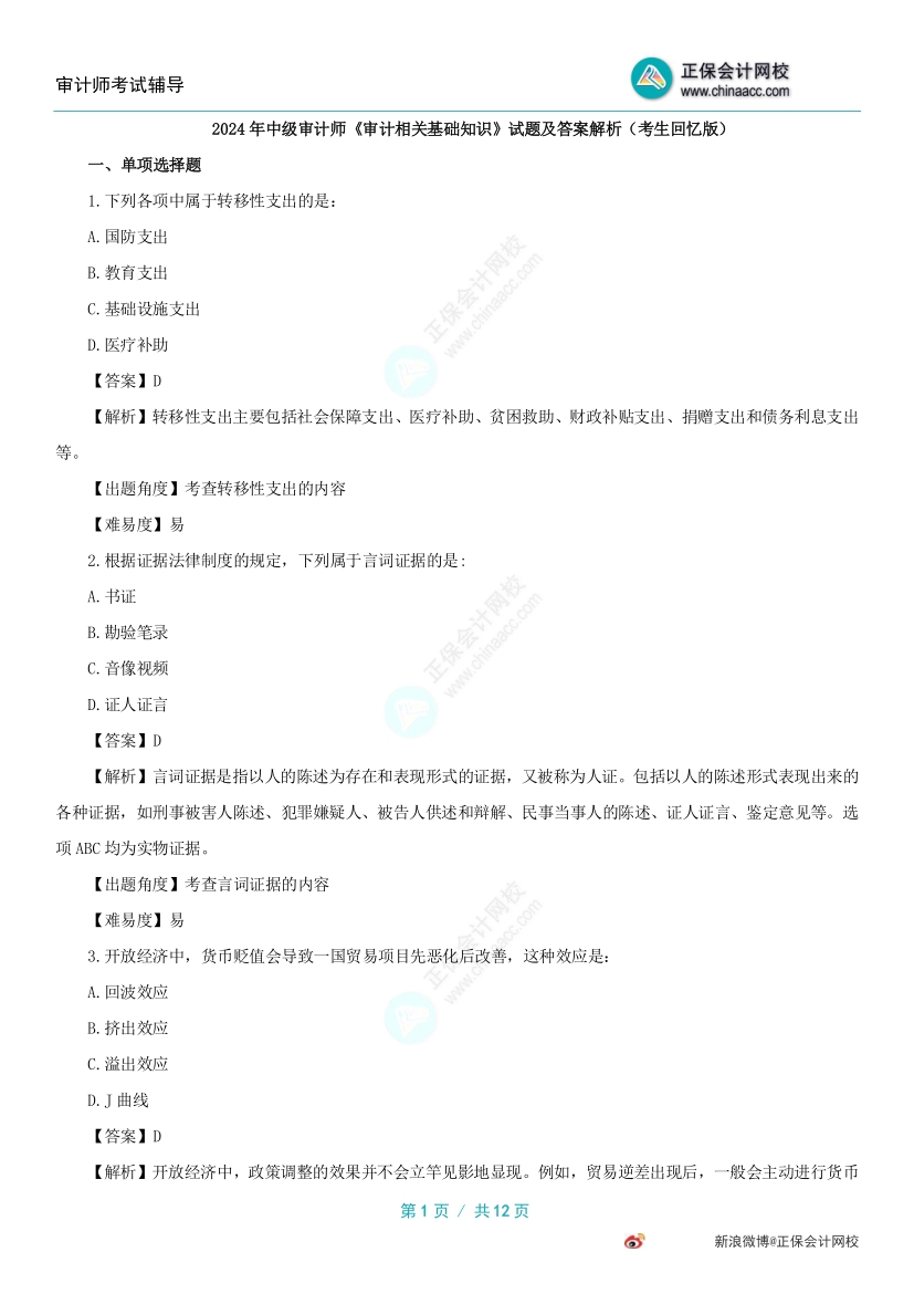 以下是2024年中級審計師考試試題《審計相關基礎知識》回憶版試卷部分內容: