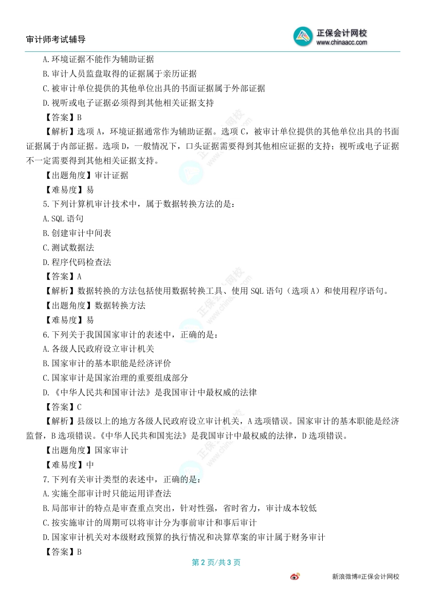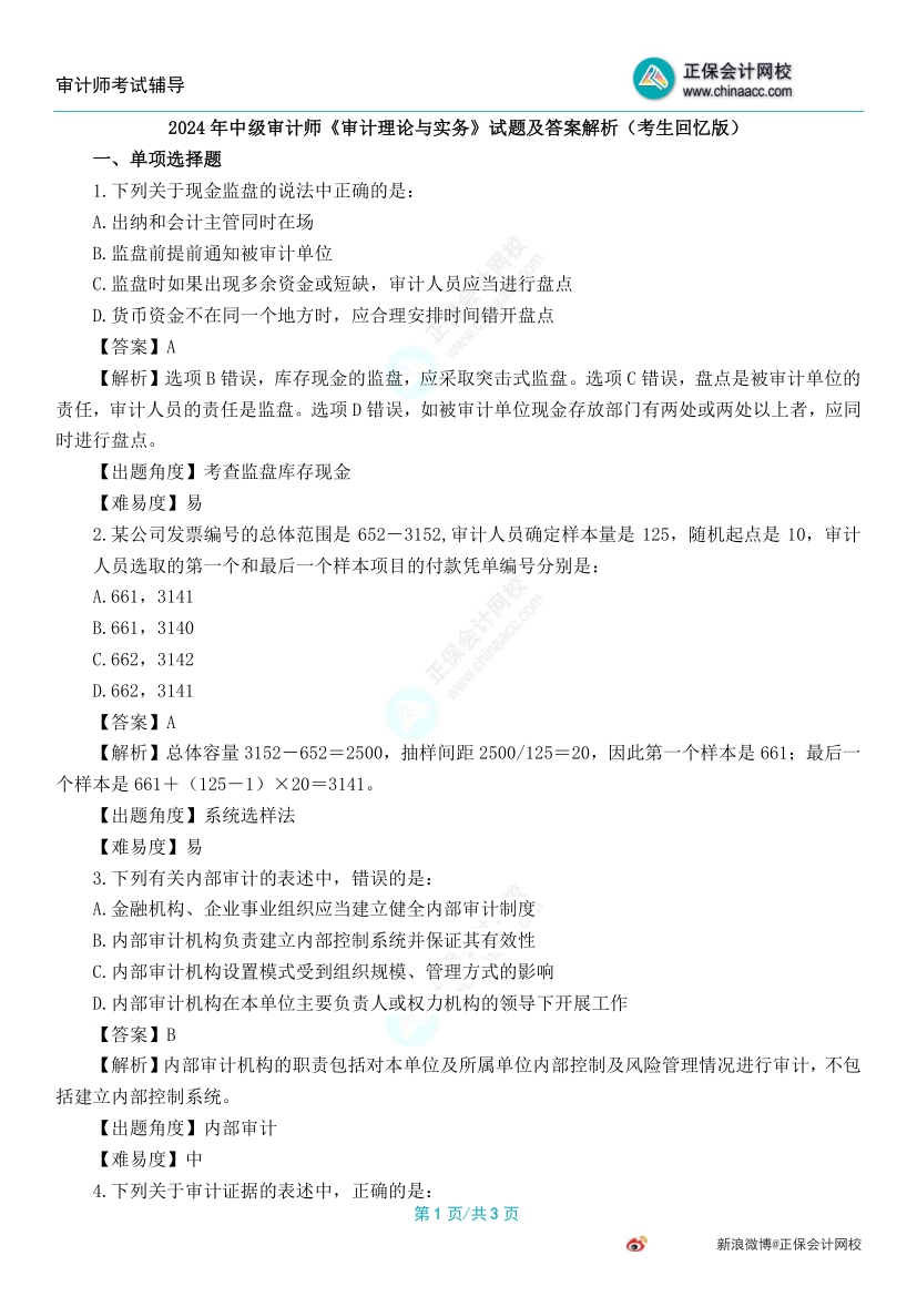 以下為2024中級審計師《審計理論與實務》試題及參考答案(回憶版):