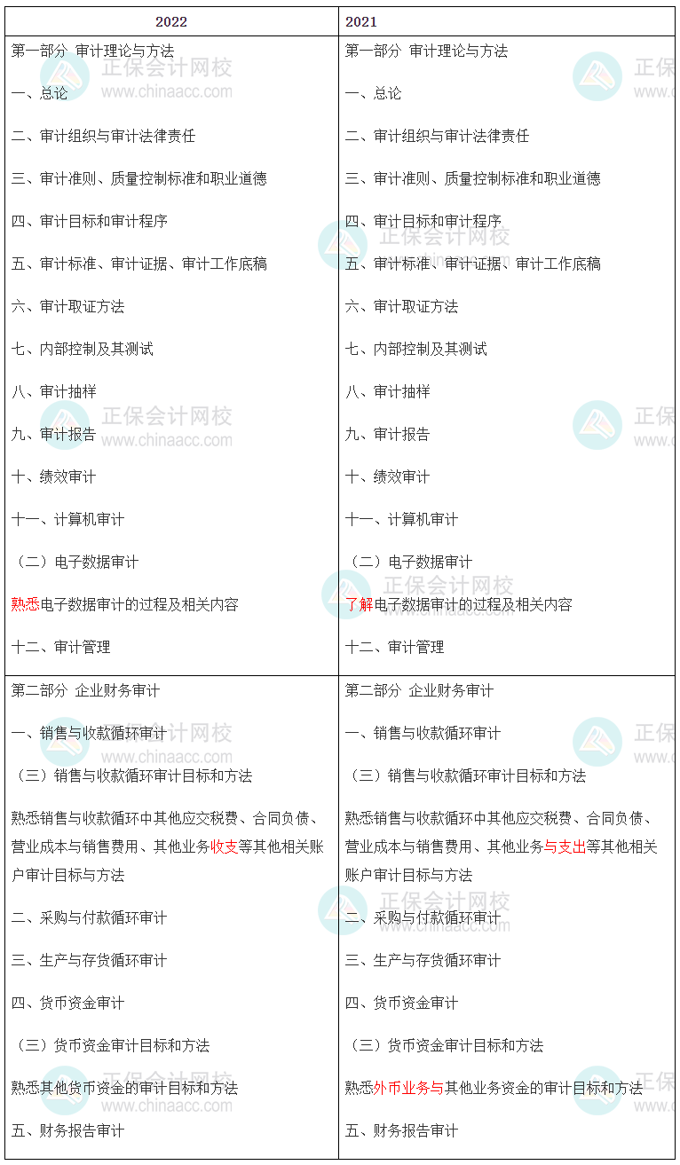 2022年中級審計師《審計理論與實務》考試大綱變化對比