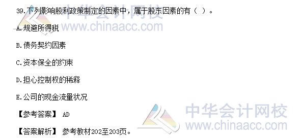 【答案解析】影響股利政策的股東因素主要有以下幾方面:①追求穩定的收入,規避風險;② 擔心控制權的稀釋;③規避所得稅。