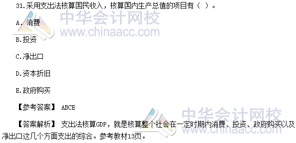 【答案解析】支出法核算GDP,就是核算整個社會在一定時期內消費、投資、政府購買以及凈出口這幾個方面支出的綜合。