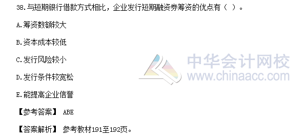 31.與短期銀行借款方式相比,企業發行短期融資券籌資的優點有: