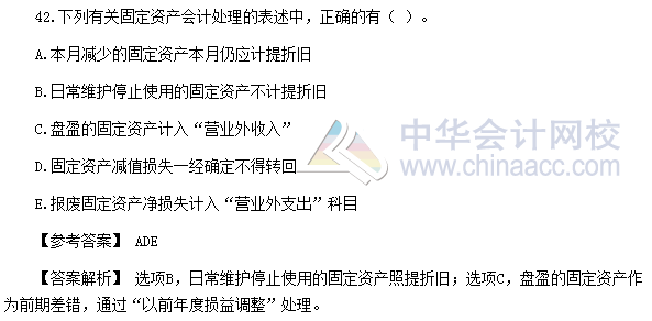 【答案解析】選項B,日常維護停止使用的固定資產照提折舊;選項C,盤盈的固定資產作為前期差錯,通過“以前年度損益調整”處理。