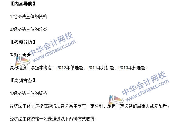 2016年中級會計職稱《經濟法》高頻考點:經濟法主體