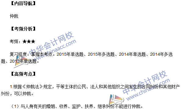 2016年中級會計職稱《經濟法》高頻考點:仲裁