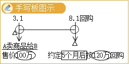 【說明】3月1號,A賣商品給B,售價為100萬元。在8月1日,再從B處買回該商品。稅法認(rèn)為,這是兩筆交易;會計認(rèn)為,這不是交易。A拿商品作為抵押,向B借款100萬元,在5個月后還款120萬元,20萬元屬于利息費(fèi)用。