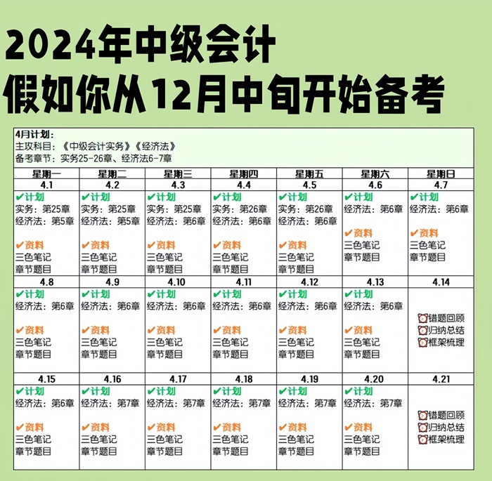 12月已經過半,準備參加2024年中級會計考試的全體考生請注意!這份每日打卡表請收好,學習任務拆解,每日合理安排,一個目的,為您省心!