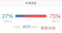 ②聽課進度,提供已學課程和未學課程各自所占百分比,通過和其他學員聽課進度的對比,施以緊迫感,尤其是聽課進度稍微落后的學員,提醒大家加快學習進度,盡早完成輔導課程的學習;