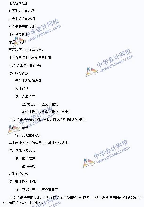 2013中級會計職稱《中級會計實務》高頻考點:無形資產的處置