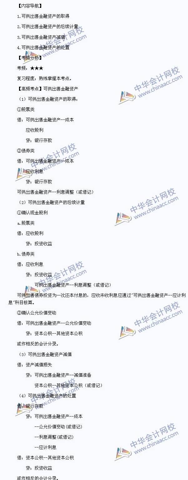 2013年中級職稱《中級會計實務》高頻考點:可供出售金融資產(chǎn)