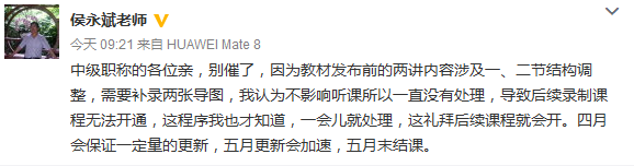 侯永斌老師勸考親們別催了,正在加快速度更新,五月末結課!你學習的速度跟上老師的錄課進度了嗎?