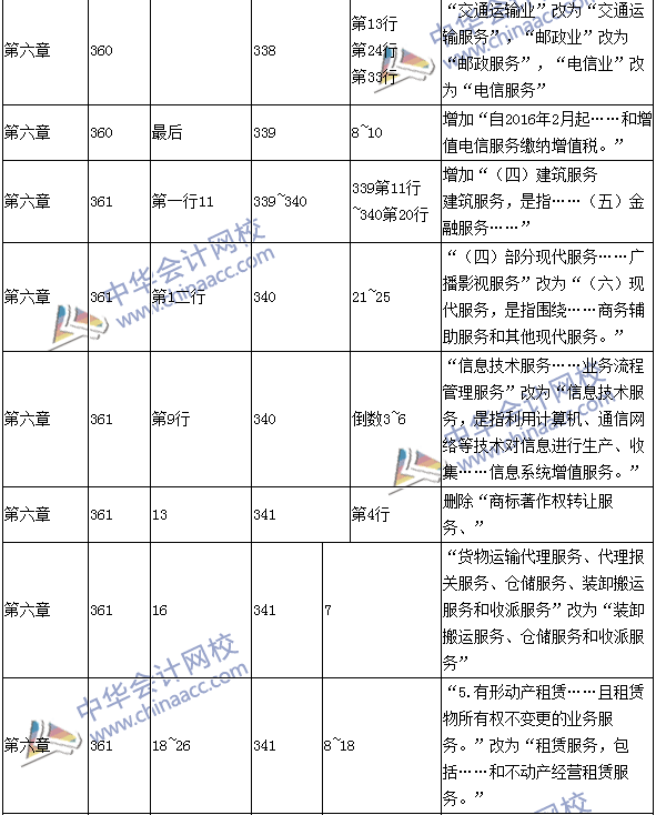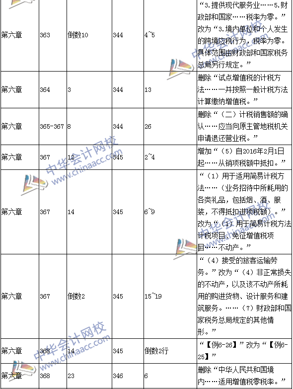2016年中級(jí)會(huì)計(jì)職稱考試教材已經(jīng)上市,正保會(huì)計(jì)網(wǎng)校輔導(dǎo)課程正在陸續(xù)開通,大部分學(xué)員此時(shí)正處于基礎(chǔ)學(xué)習(xí)階段,因此正保會(huì)計(jì)網(wǎng)校特整理了各科目教材變動(dòng)情況,方便大家更系統(tǒng)的學(xué)習(xí)?!督?jīng)濟(jì)法》第六章總體變化很大。主要是根據(jù)最新的營改增政策進(jìn)行了大幅度調(diào)整。。