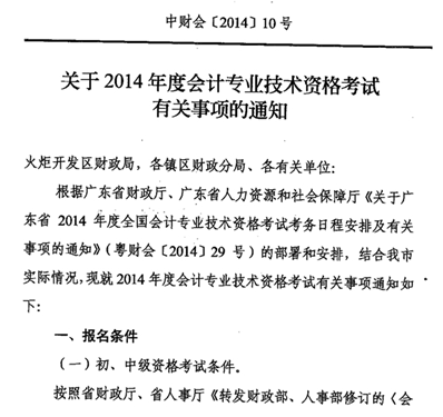 廣東中山2014年中級會計師考試報名時間4月1日至4月28日