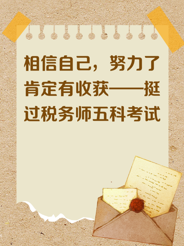 現在,2023年稅務師考試已經落下帷幕,在長達一年的備考中,很幸運,自己能夠一次挺過五科考試。個中的心酸、艱苦歷歷在目,但是,我堅信最后一定會“輕舟已過萬重山”,相信自己,付出了肯定會有回報。