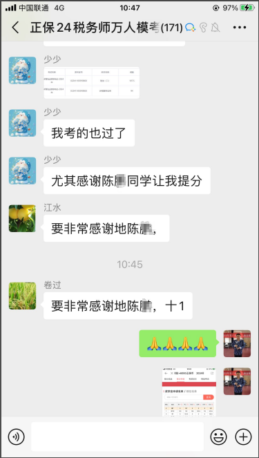 我在網校的稅務師群,給同學解答稅法二的問題,得到了同學的肯定,我很有成就感!我稅法二就憋著考第一名呢,最終如我所愿,最后祝網校考生都能逢考必過!