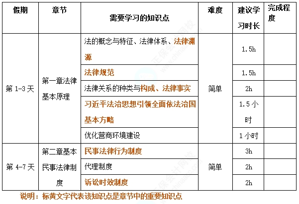 對第一次備考的考生來說,首先需要養(yǎng)成學(xué)習(xí)習(xí)慣,其次是打好基礎(chǔ),而且學(xué)習(xí)壓力不宜過大,因此,十一長假期間,零基礎(chǔ)考生可以先學(xué)習(xí)第一章和第二章的內(nèi)容。這兩章比較基礎(chǔ),相當(dāng)來說也比較簡單,對培養(yǎng)學(xué)習(xí)習(xí)慣來和打好基礎(chǔ)是最適合的。