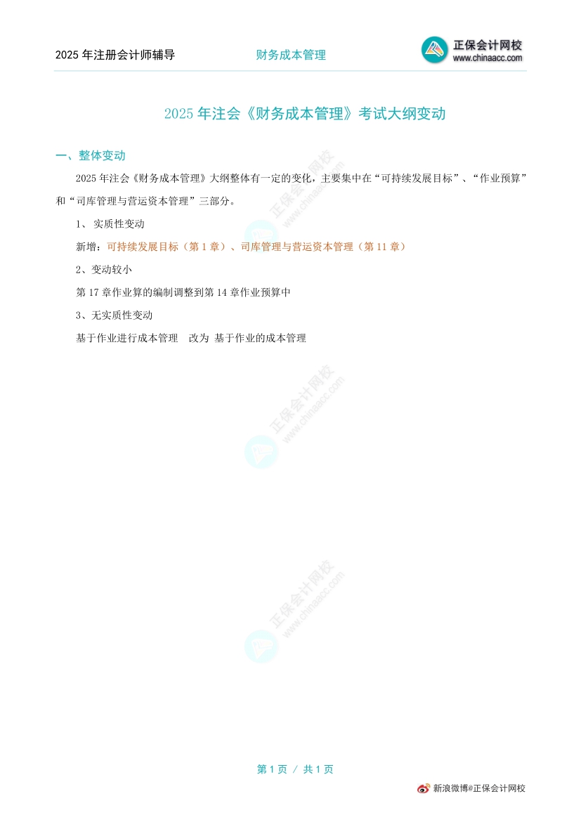 2025 年注冊會計師考試大綱現已重磅公布(點擊查看大綱 >)!不少考生都在關心,2025 年注會《財管》科目考試大綱和 2024 年相比,變化大不大呢?別著急!正保會計網校已經針對新舊注會考試大綱展開了全面且細致的對比分析,幫你快速梳理,輕松 get 變化要點,備考不迷茫 !