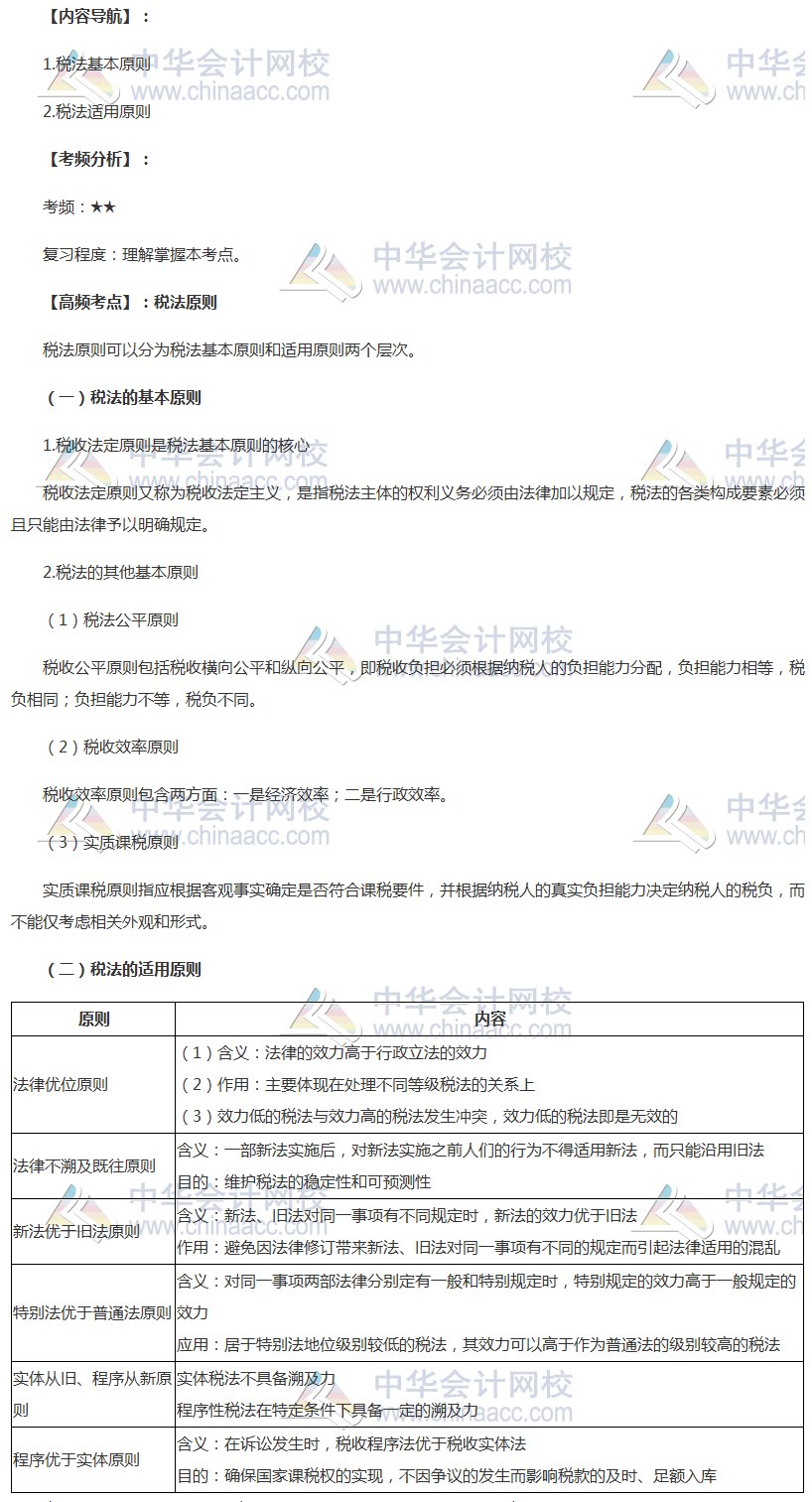 備考時間緊張,抓緊時間抓住重點備考注冊會計師吧!正保會計網校教學老師為廣大考生整理了高頻考點,我們一起來學習2018年《稅法》高頻考點:稅法原則。本考點屬于《稅法》第一章稅法總論第二節稅法原則的內容。