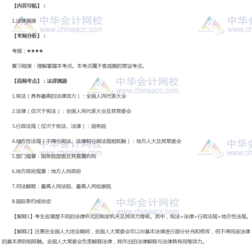 備考時間緊張,抓緊時間抓住重點備考注冊會計師吧!正保會計網校教學老師為廣大考生整理了高頻考點,我們一起來學習2018《經濟法》高頻考點:法律淵源。本考點屬于《經濟法》第一章法律基本原理第一節法律基本概念的內容。
