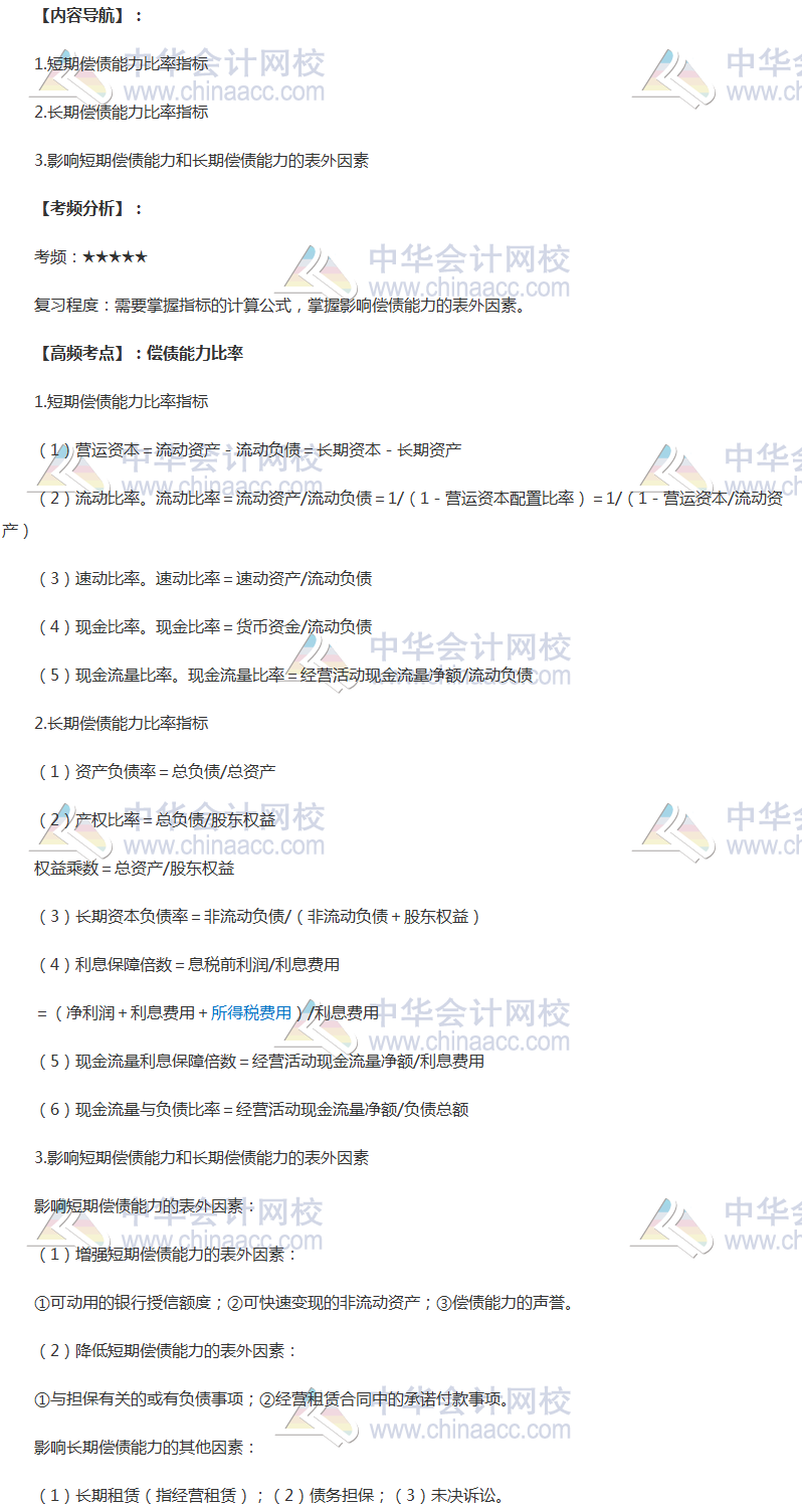 備考時間緊張,抓緊時間抓住重點備考注冊會計師吧!正保會計網校教學老師為廣大考生整理了高頻考點, 我們一起來學習2018《財務成本管理》高頻考點:償債能力比率。本考點屬于《財務成本管理》第二章財務報表分析和財務預測第二節財務比率分析的內容。