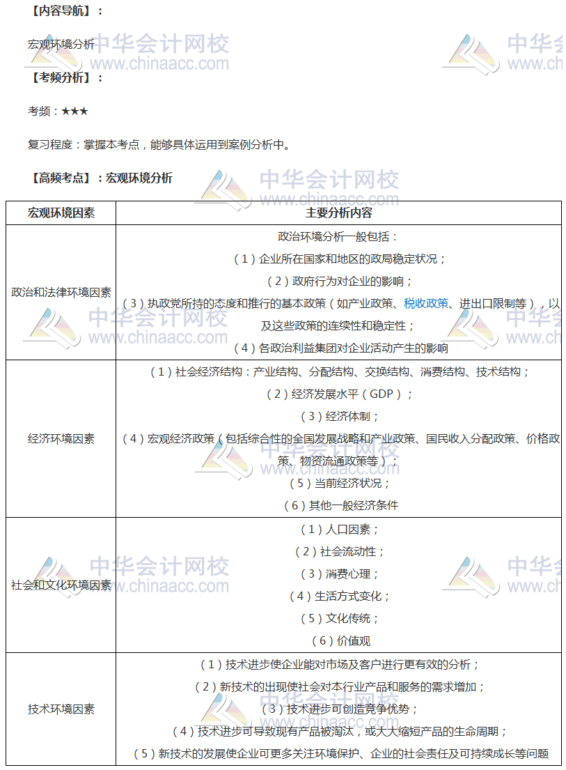 2018年注會《戰略》高頻考點:宏觀環境分析