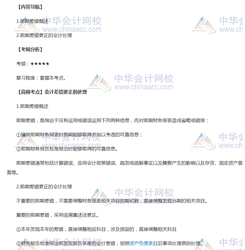2018年注會《會計》高頻考點:會計差錯更正的處理