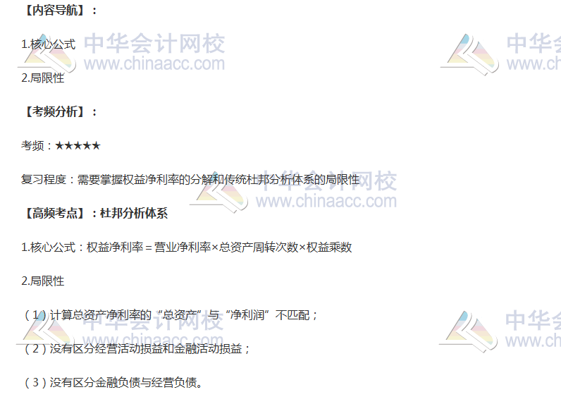 備考時間緊張,抓緊時間抓住重點備考注冊會計師吧!正保會計網校教學老師為廣大考生整理了高頻考點,我們一起來學習2018年注冊會計師《財務成本管理》高頻考點:傳統杜邦財務分析體系。本考點屬于注冊會計師《財務成本管理》第二章財務報表分析和財務預測第二節財務比率分析的內容。