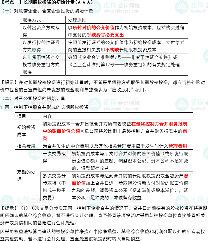 長期股權投資的初始計量、后續計量(權益法)、長期股權投資的轉換、長期股權投資的處置、合營安排