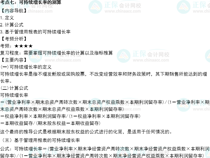 考點七 | 可持續(xù)增長率的測算 | ★★★★ |