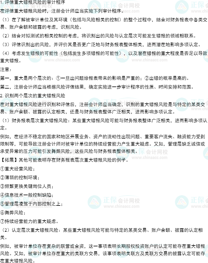【考點(diǎn)二】識(shí)別兩個(gè)層次的重大錯(cuò)報(bào)風(fēng)險(xiǎn)(★★★)