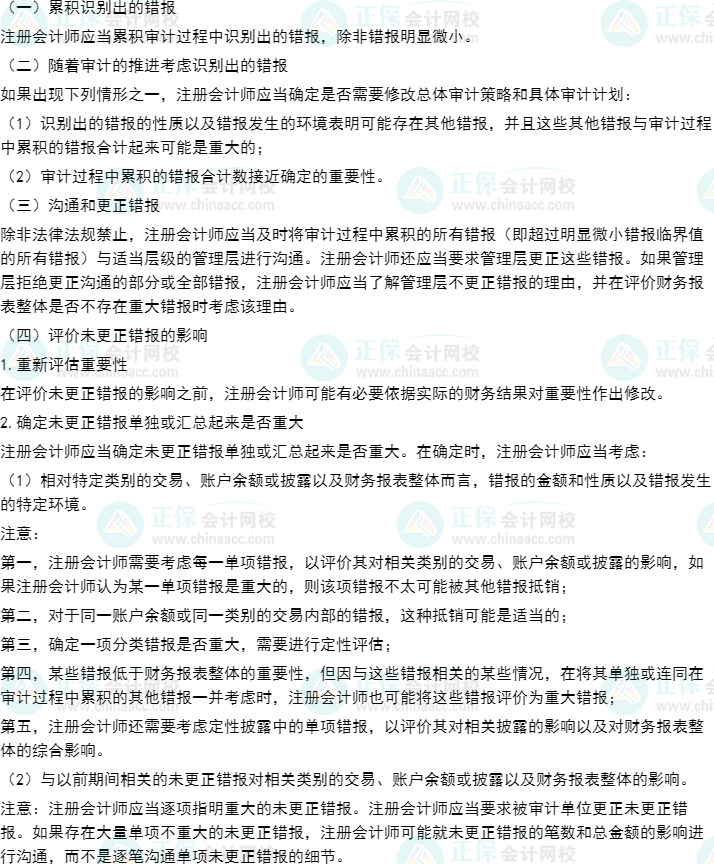 【考點一】評價審計過程中識別出的錯報(★★★)