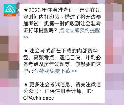 預約成功之后,網校會在準考證入口開放當天提醒您2023年注會準考證打印入口開通!讓你盡快打印,幫助您順利參加考試~