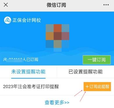三、找到“2023年注會準考證打印提醒”,點擊此處“+訂閱此提醒”會提示“訂閱成功”。