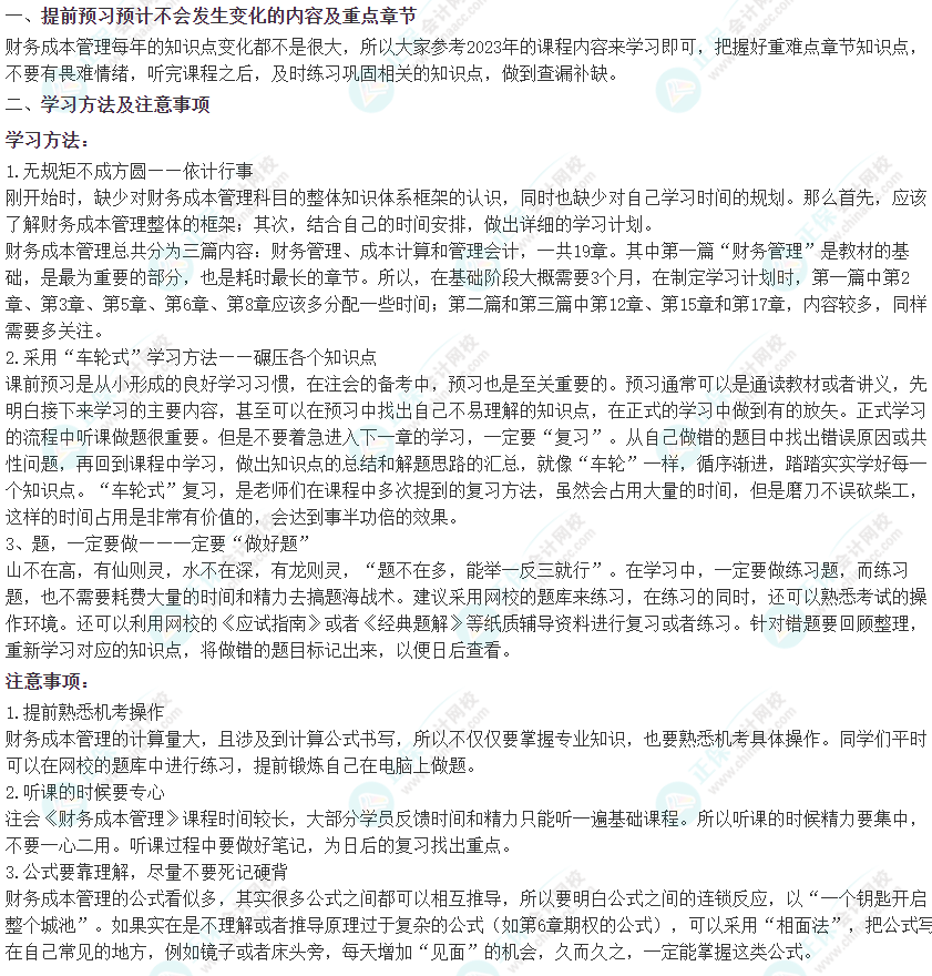 【建議收藏】2024年注會《財管》預習階段學習方法及注意事項!