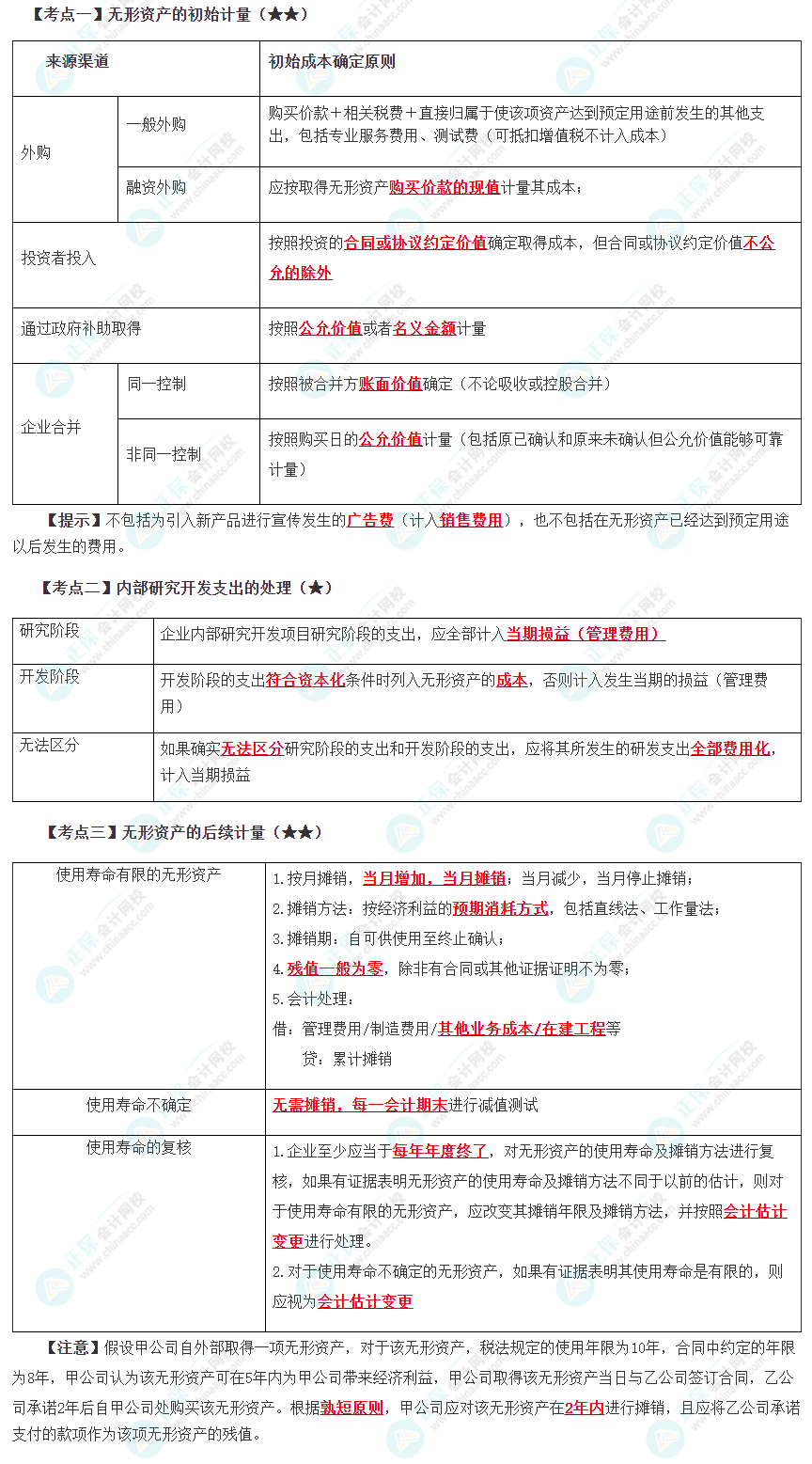 無形資產的初始計量、內部研究開發支出的處理、無形資產的后續計量
