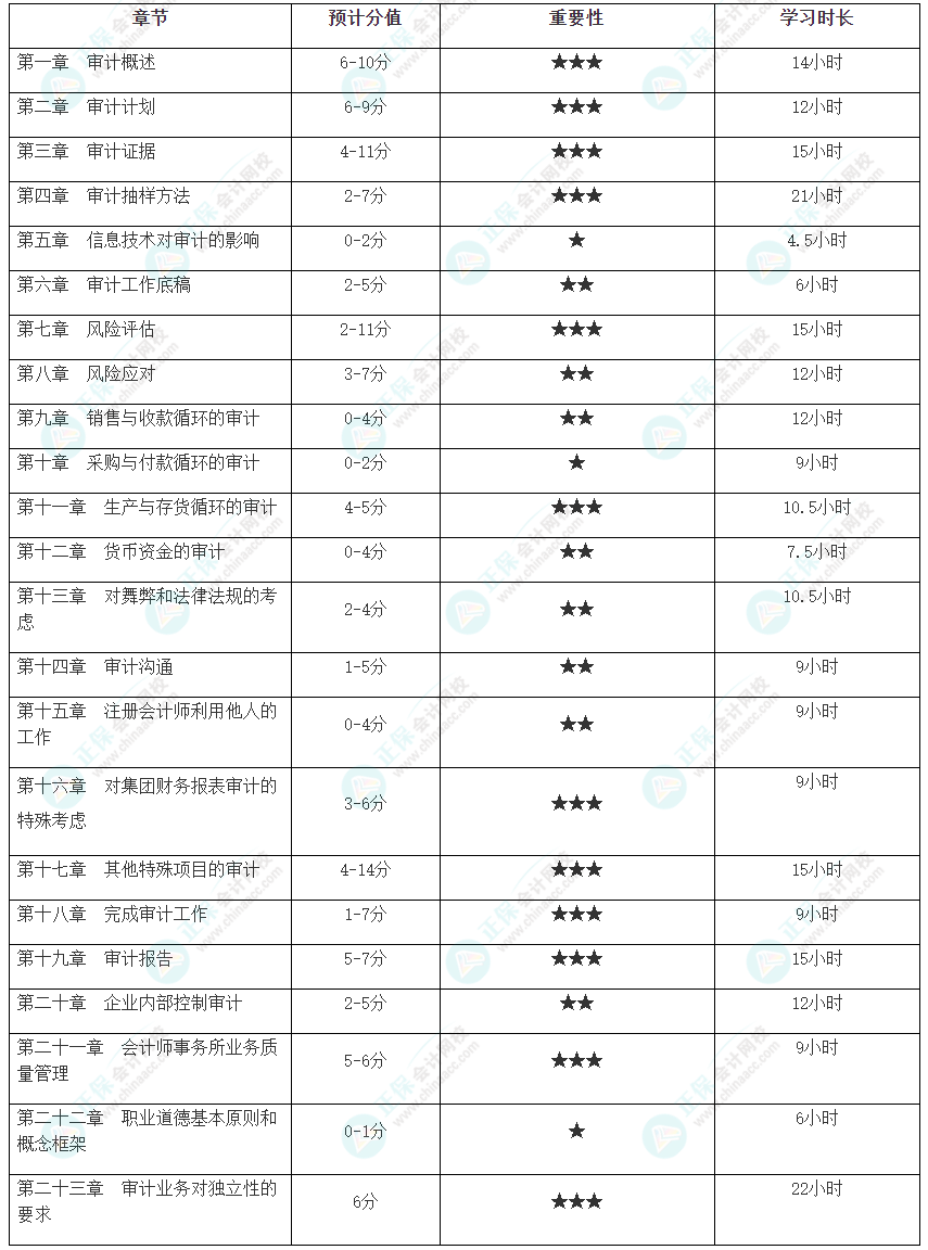 注會(huì)《審計(jì)》各章節(jié)重要性及建議學(xué)習(xí)時(shí)長!