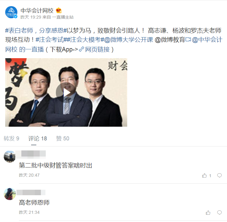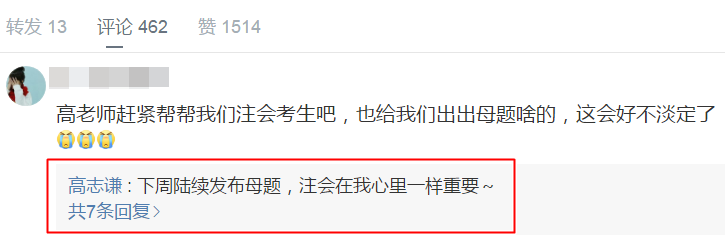 別著急,高志謙老師說了,注會同樣重要,注會母題會陸續發布,還等什么呢,趕快關注起來吧!關注高志謙老師微博>> 為高老師打call>>