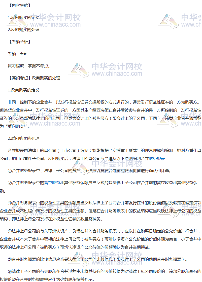 備考時間緊張,抓緊時間抓住重點備考注冊會計師吧!正保會計網校教學老師為廣大考生整理了高頻考點,我們一起來學習2018《會計》高頻考點:反向購買的處理。本考點屬于《會計》第二十六章企業合并第二節企業合并的會計處理的內容。
