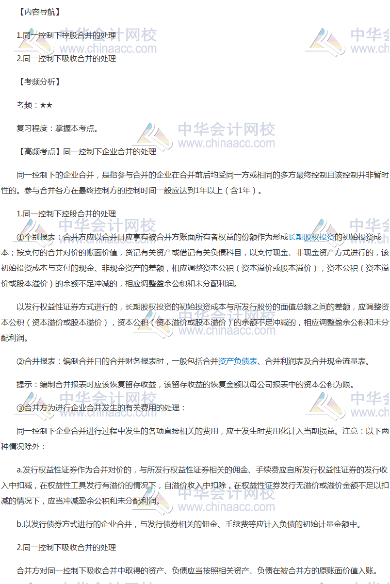 2018注會《會計》高頻考點:同一控制下企業合并的處理