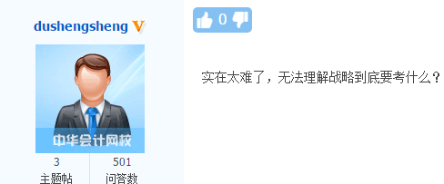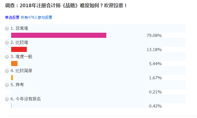 根據正保會計網校的調查問卷情況,近80%的考生認為今年的戰略考試“非常難”!按照案例來說,戰略本該是注會考試科目中最簡單的一科。遙想小編當年,報了3科,只有戰略堪堪過了及格線。