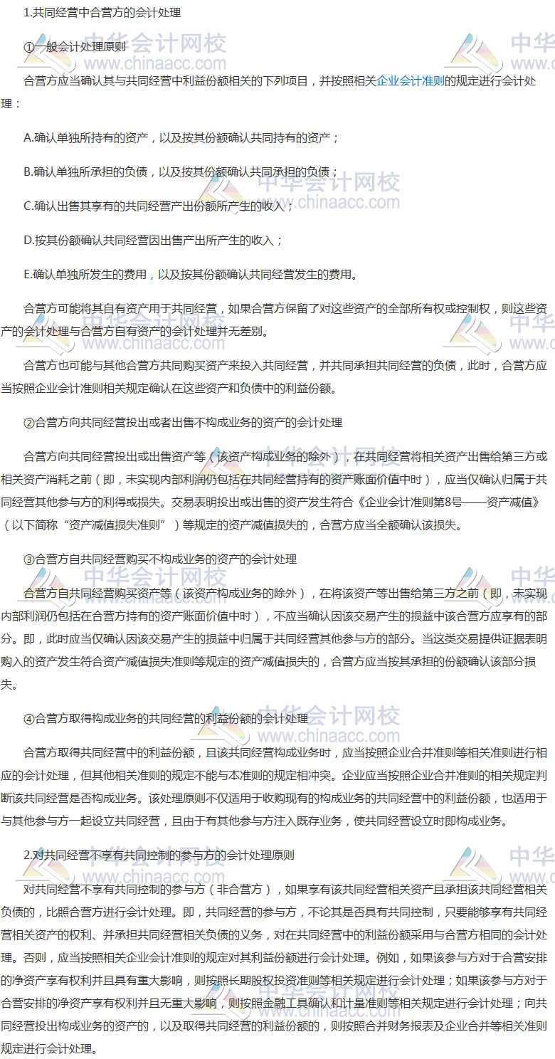 2017注會《會計》高頻考點:除合營企業外其他合營安排的處理