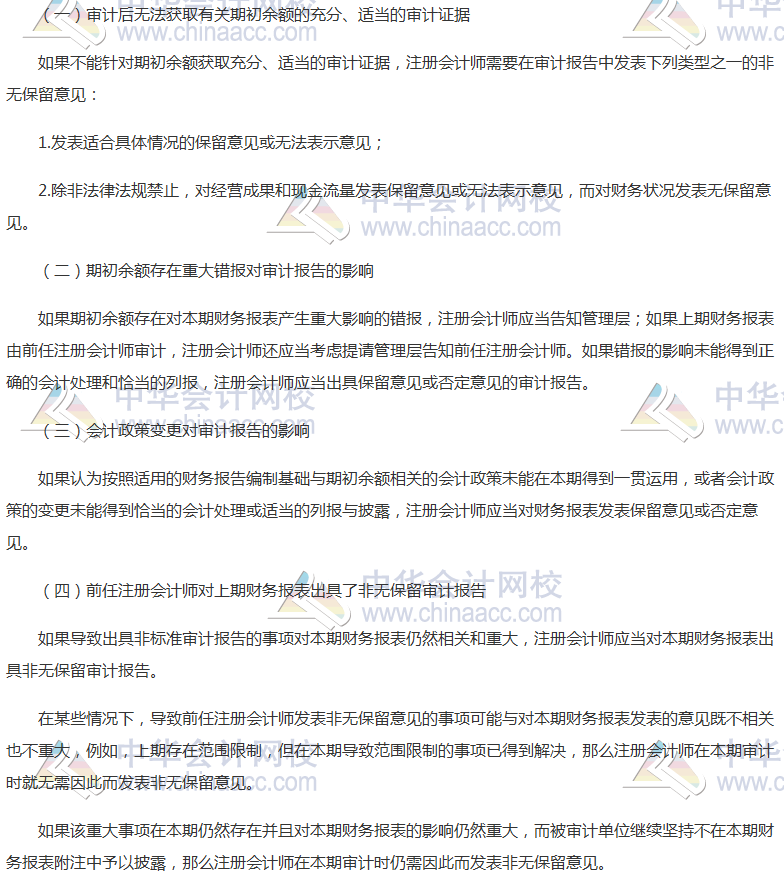 4. 前任注冊會計師對上期財務報表出具了非無保留審計報告