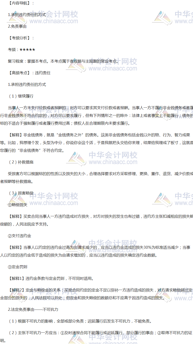 備考時間緊張,抓緊時間抓住重點備考注冊會計師吧!正保會計網(wǎng)校教學(xué)老師為廣大考生整理了高頻考點,我們一起來學(xué)習(xí)2018《經(jīng)濟(jì)法》高頻考點:違約責(zé)任。本考點屬于《經(jīng)濟(jì)法》第四章合同法律制度第八節(jié)違約責(zé)任的內(nèi)容。