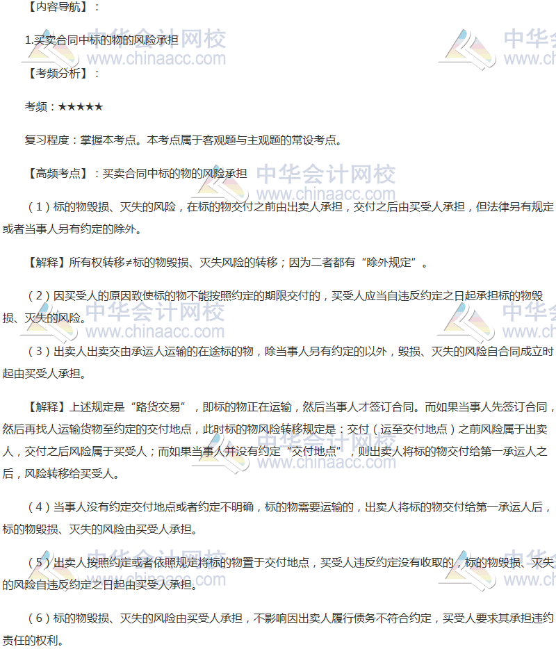 2018年注會《經濟法》高頻考點:物的風險承擔