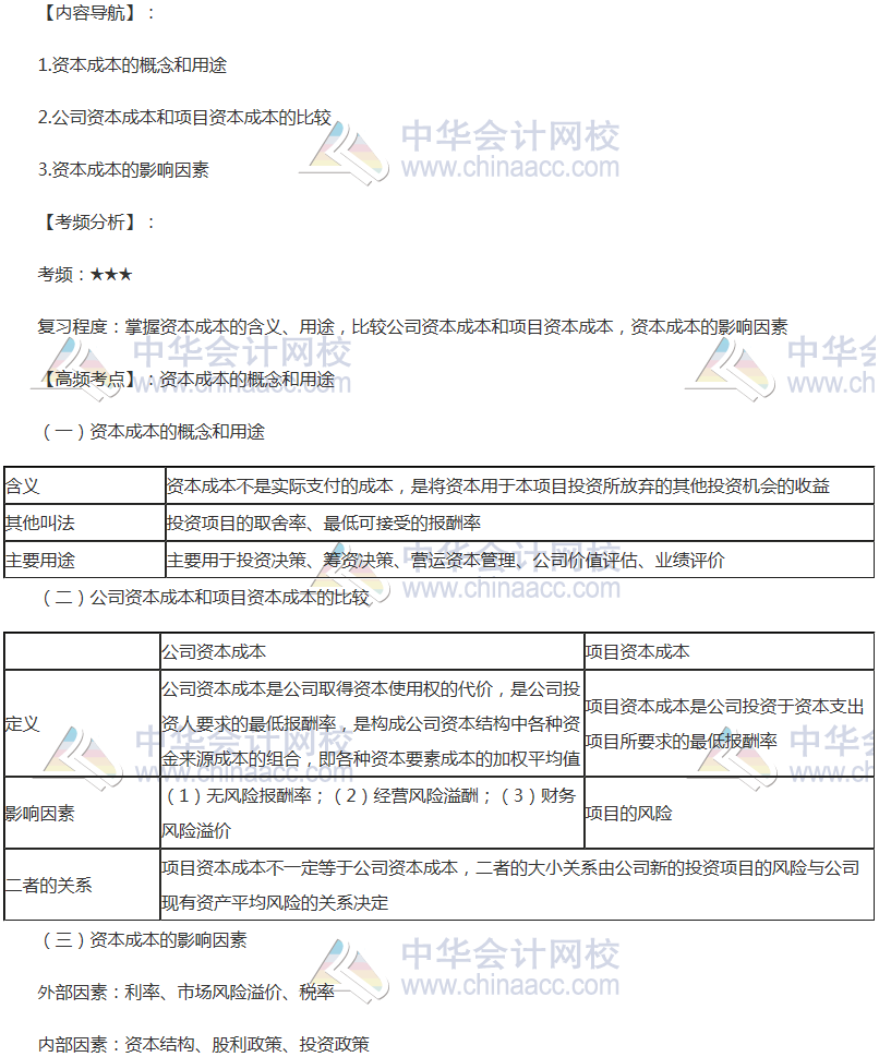 2018年注會《財管》高頻考點:資本成本的概念和用途